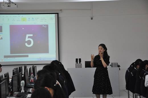 余意老师带来了一堂《指针法的应用》课,她以校园歌手大赛导入迅速吸引了学生的注意力,将指针法的运用引入到为校园歌手排名,学生十分有带入感,课堂重难点突出,学生学习积极性高。郑玥老师带来了一堂《动画设置与超链接——PPT的使用》,在课前通过手机学习软件发布微课,收集学生遇到的问题,从而确定本节课的讲解重点,并利用制作好的极具震撼力的倒计时动画让学生清楚知道这节课他们将要达到的学习效果,信息化手段运用到位,学生的创作激情浓厚。两位老师在课堂上以良好的师生交流氛围,感染了每一位听课的老师,对课堂教学起到了良好的示范作用。