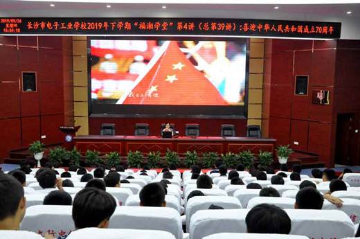 本网讯(通讯员 王雄姣)为迎接中华人民共和国成立70周年,宣传展示新中国成立70年以来取得的伟大成就,激发广大学生的爱国热情,9月26日下午,yh533388银河思政课专任教师刘晓航以“喜迎中华人民共和国成立70周年”为主题,为同学们上了一堂生动的政治课。1910-1914班全体学生齐聚开慧厅,认真聆听讲座。讲座由办公室副主任罗志勇主持。