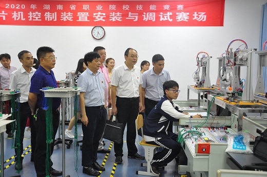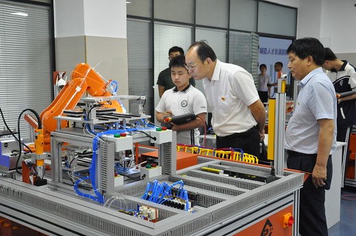 会后,李正祥校长、李志彬书记陪同客人参观了学校校园及部分实训室。