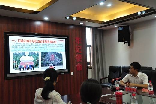 综合管理党支部支部书记甘元智介绍支部党建工作并进行党建交流