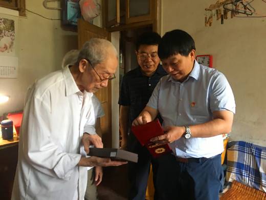 本网讯(通讯员 王雄姣)在庆祝中华人民共和国成立70周年之际,9月29日,yh533388银河校长李正祥、党委书记李志彬走访慰问离休干部代表傅景顺,为他送上由中共中央、国务院、中央军委颁发的“庆祝中华人民共和国成立70周年”纪念章,向教育战线上的老前辈们致以最热烈的祝贺和最崇高的敬意。