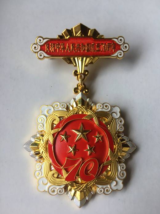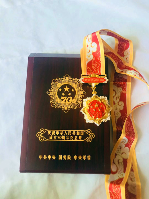 “庆祝中华人民共和国成立70周年”纪念章,由中共中央、国务院、中央军委颁发,以此对新中国成立前参加革命工作的老同志、或新中国成立后获得国家级表彰奖励的人士等为中国革命和建设发展做出贡献的各领域人员,进行特别嘉奖,这是新中国成立70周年系列庆祝活动的重要组成部分。