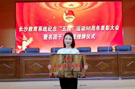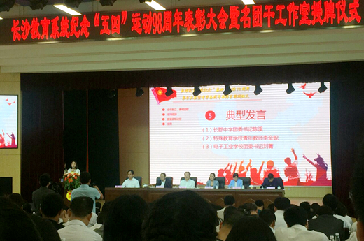 5月4日,我校6名青年教师代表、3名优秀学生代表参加了长沙市教育系统纪念“五四”运动98周年表彰大会暨名团干工作室授牌仪式活动。