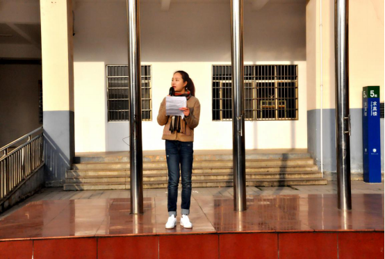 接下来团委青年志愿者协会会长周暖和同学向全校师生分享了她在志愿服务活动中所获得的“奉献的快乐和实践的成长”。她在总结和反思中提到了:“学雷锋,绝不是只学习他的记日记的这个好习惯,真正要学习和推广的是他的诚信、善良、责任、感恩等优良品质和他的螺丝钉精神、爱憎分明的阶级立场、言行一致的革命精神等等。
