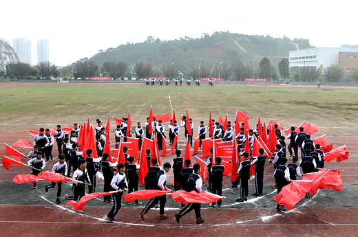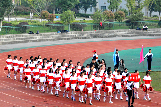 早上八点半,田径场上已是人头攒动,彩旗迎风飘扬,一切都只为迎接学校的体育盛会,运动员代表满怀豪情,迈着自信的步伐进入田径场。全体校领导及中层以上干部参加了开幕式,李正祥校长在开幕式上致辞,倡导全体师生积极参加体育锻炼,增强身体素质;裁判员和运动员举起右手庄严宣誓。开幕式上各专业部表演方队的同学给全校师生带来了精彩纷呈的文艺表演,赢得了阵阵喝彩。最后李志彬书记宣布运动会开幕!随着裁判员的发令枪声响起,各项比赛有条不紊地开展。。。