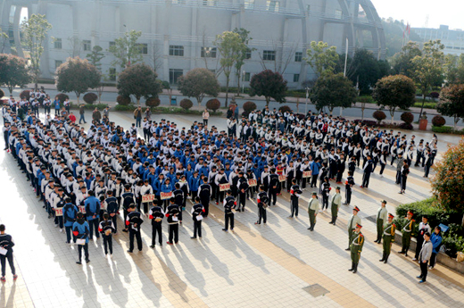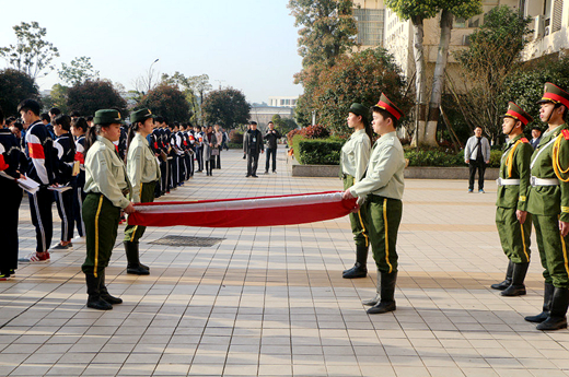 国旗班迈着整齐的步伐,护送国旗入场。伴随着庄严雄壮的国歌,五星红旗冉冉升起,师生们怀着崇敬的心情,凝视着迎风飘扬的红旗。接着,副校长贺今海在国旗下作了讲话。他回顾了旧中国的屈辱历史、当时千万中华儿女的远大抱负。他说,作为21世纪青少年的我们,应该明白现在的生活来之不易,要懂得所肩负的历史责任和历史使命,做到“牢记传统,不忘职责”。他希望同学们脚踏实地,勤奋学习,以优良的品格、精湛的技能告慰先烈,报效伟大的祖国。