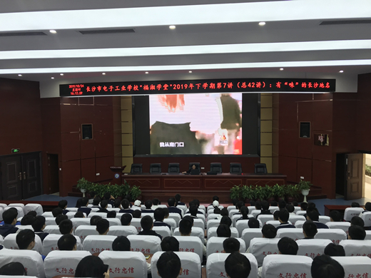 本网讯(通讯员 罗迪)无论是历经战火的"妙高峰""天心阁",还是商贾遍地的"五一路""太平街",都诉说着长沙的城市历史格局与变迁。纷繁林立的长沙地名,或流传着一段动人的传说,或承载了一段不凡的历史典故。10月24日下午, “福湘学堂”2019下学期第7讲在开慧厅正式开讲。我校语文高级教师龚志红以“有‘味’的长沙地名”为主题,为电子部高一年级学生上了一堂精彩的湖湘文化课。讲座由罗迪老师主持。