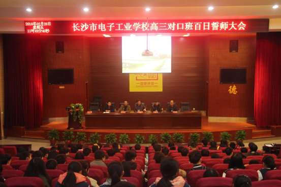 “春风得意马蹄疾,最是金榜题名时”。带着期盼与憧憬,2月26日上午,我校高三对口班130多名师生欢聚一堂,隆重举行迎高考百日誓师大会,擂动了决战高考隆隆战鼓,吹响了冲刺高考嘹亮号角。