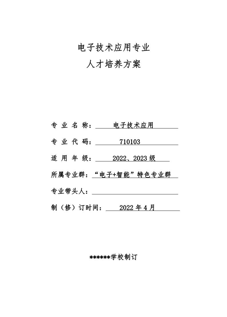 电子技术应用专业人才培养方案