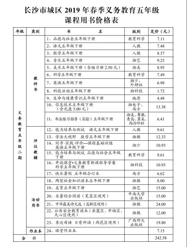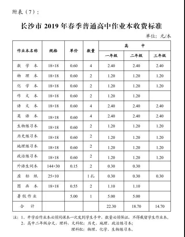 转发:长沙市2019年春季中小学收费标准