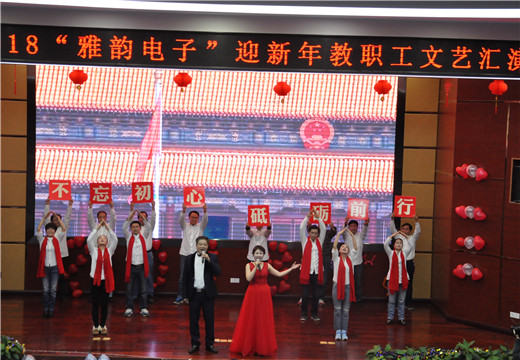 1月5日下午,由学校工会主办的“雅韵电子”教职工迎新年文艺汇演在开慧厅隆重举行,全体教职工参加了活动。校长李正祥致新年贺词。