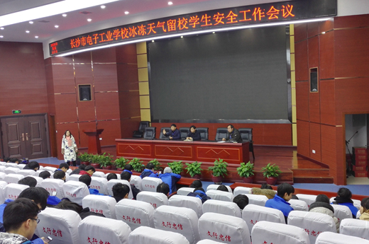 随后,学生科组织全体滞留学生于中午1:00在开慧厅召开安全工作会议,校长李正祥、分管学生工作的纪委书记彭新明、学生科科长孙仕要、学生科副科长李荣斌参加了会议。会上,李校长对因冰冻天气不能回家的学生表示慰问,并强调,学校已对各方面进行了安排,能够确保大家在校生活的安全和便利,希望大家安心等待天气好转:一是宿管老师全部值班,直到所有学生安全回家;二是后勤保障到位,确保寝室充足热水供应和免费按时的三餐供应;三是免费开放2间机房,供大家休息娱乐;四是安排了行政干部24小时值班,随时为留校学生排忧解难。李校长还要求全体学生留校期间将安全摆在第一位,不要随意出校园,不在雪地里打闹,走路时不要看手机,准时归寝。随后,分管学生工作的纪委彭新明书记对留校期间的具体安排进行了说明,包括食堂就餐时间,归寝的时间,休息室的具体位置等,并强调,在校期间男女同学不能串寝;在机房要文明上网,不信谣传谣;回家要执行向宿管员报告、向班主任报告、在留校学生微信群报告的“三报告”制度;切勿在外逗留,要保持和家长的联系。最后,孙科长登记了留校学生的详细信息,并组建了微信群,方便相互交流。