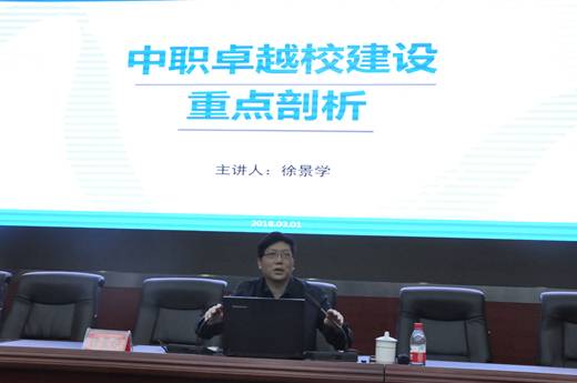 徐景学教授作以《中职卓越校建设重点剖析》为主题的讲座