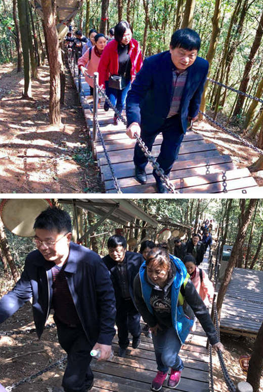一路上,车内欢声笑语,欣赏着车外的无限春光,汽车大约行驶了约2小时,老师们先到达了浏阳石牛寨风景区,女教师们漫步在山林间,两三个一伙,四五个一群,簇拥在熙熙攘攘的人群之中,畅谈交流,拍照留影,伴着迎面吹来的春风,大家的心里是暖融融的,尽情欣赏着自然风光。