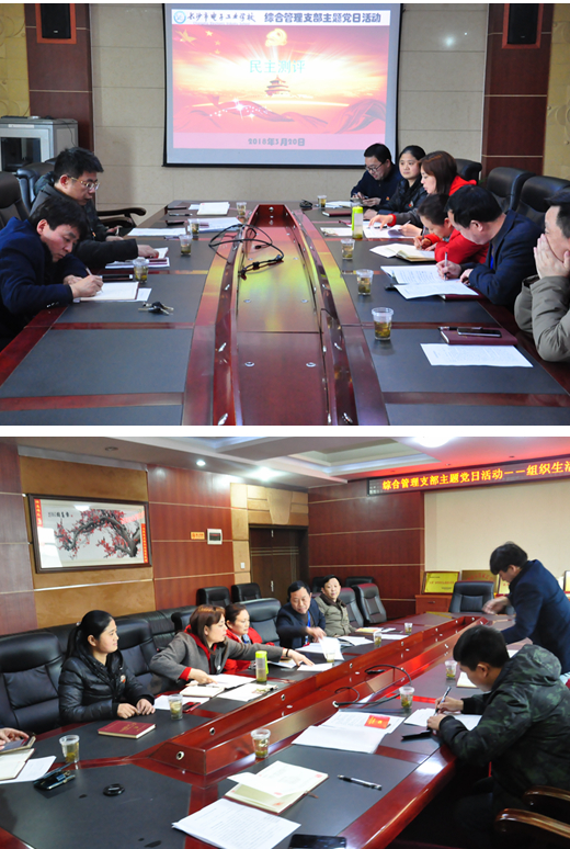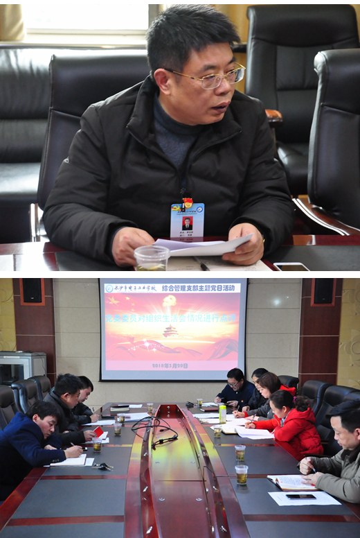 为深入学习贯彻党的十九大精神,进一步严格党的组织生活, 根据校党委《关于召开2017年度组织生活会和开展民主评议党员的通知》(长电党[2018]1号)的要求和部署,3月20日中午,综合管理支部组织开展了3月份的主题党日活动,进行组织生活会和民主评议党员。校党委李志彬书记出席了会议并参与活动全过程。
