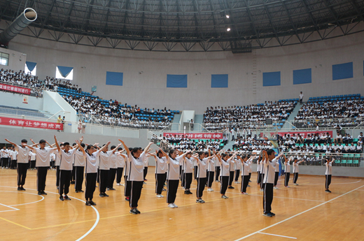 本网讯(通讯员 李宏民)为丰富校园文体生活,提高广播操质量,锻炼学生体质,培养学生竞争、协作精神和集体荣誉感,促进学生素质全面发展,进一步推动学校阳光体育运动的蓬勃发展和文明和谐校园的创建,我校于2018年6月7日下午在基地体育馆举行了全校广播操比赛。