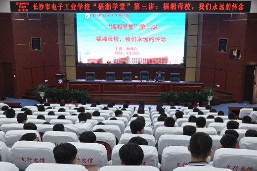 本网讯(通讯员 王雄姣)9月20日下午,我校机电部高一学生齐聚开慧厅,共同聆听原长沙市第十九中学校长、全国先进教育工作者、1957级福湘校友杨莼白给我们带来的一场别开生面的讲座。也是我校“福湘学堂”系列讲座的第三讲《福湘母校,我们永远的怀念》。