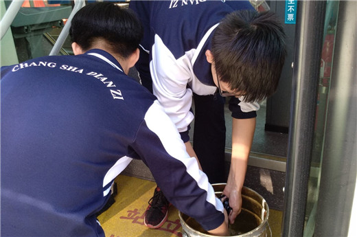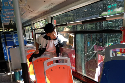 本网讯(通讯员 龙泽)为积极培育和践行社会主义核心价值观,秉承学校团学志愿品牌“学习雷锋、奉献他人、提升自己、电亮青春”的优良传统,同时全面提升我校精神文明建设水平,努力构建和谐校园。10月12日中午,yh533388银河1701团支部第二团小组,在团支部指导员蒋艺老师的带领下,来到长沙市雨花区120路公交车调度站,对站内停放的公交车进行了车里车外的卫生清洁志愿服务活动。此次活动共清洗公交车10台,擦拭公交站台10余个,清理站台旁小广告180余处。