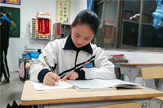 每天清晨,在yh533388银河2栋2楼都会传来清亮而有力的声音:“某某同学到了没?”“请卫生委员给今天的卫生情况再仔细检查一遍!”“请同学佩戴好校牌,团员同学佩戴好团徽,做好班级榜样!”……一个娇小的身影出现在三尺讲台上,一身整洁的校服,熠熠闪光的团徽,精神利落的马尾,灿烂温暖的笑容,铿锵有力的发号声,这就是我们今天青春团事的主人公——1715团支部团支书余莎莎。