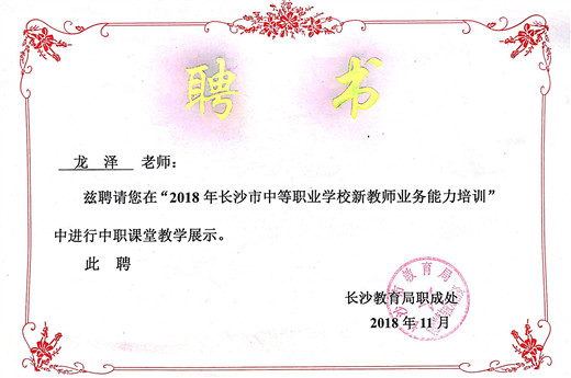 本网讯(通讯员 李霖)为帮助新教师尽快融入中职课堂,提升中职教师队伍整体水平,日前,长沙市教育局职成处举办了新教师业务能力培训会,全市中职学校新教师代表参加,我校青年教师龙泽获邀在培训会议中进行中职课堂教学展示与经验分享。会议由袁晓玲所长主持。