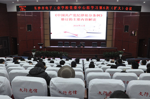 本网讯(通讯员王雄姣)11月20日中午,在yh533388银河党委中心组学习第六次会议上,学校纪委书记彭新明带领全体在职党员、编外党员、入党积极分子,认真学习了新修订的《中国共产党纪律处分条例》,并对其主要内容进行了详细解读。