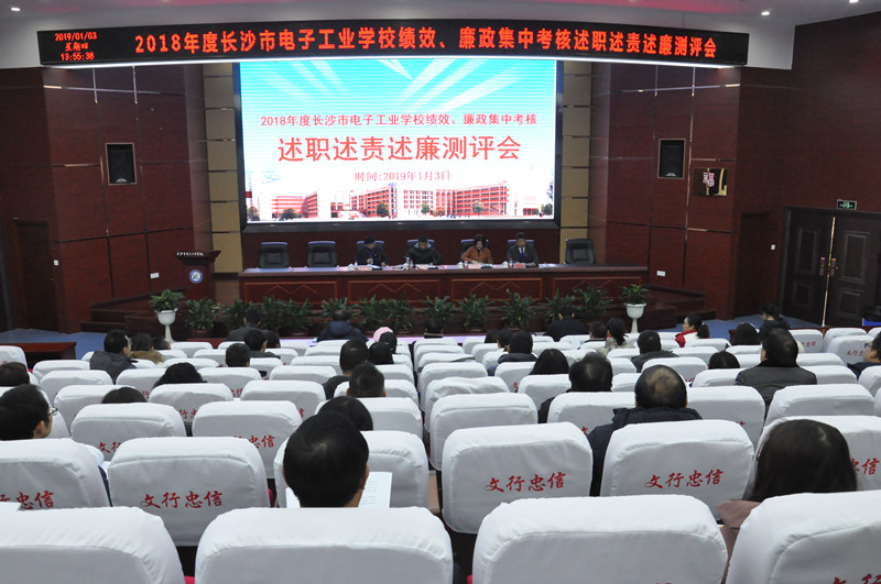 首先,校长李正祥在述职述廉大会上代表学校领导班子作述职报告,围绕党建、德育、教学、教研、招生就业、群团工作、后勤安保七个方面简明扼要对学校工作进行了总结。他说:“2018年,学校结合办学实际及区域产业发展需求,围绕争创省卓越校和湖南省文明校园这两项中心工作,以力争把学校打造成省内‘四个一流’的中职学校为目标,紧密团结全体教职员工,不断加强学校专业建设、教师队伍建设及治理能力建设,特色更加鲜明,质量提升明显,影响不断扩大。”接着,党委书记李志彬作2018年度党委落实全面从严治党主体责任报告,他指出,一年来,学校党委坚持问题导向,保持战略定力,聚焦重点,抓纲带目,为学校各项工作2018年全面突破提升提供了坚强保障。