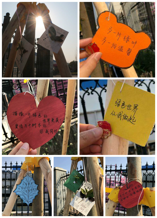“我要和小树一起成长。”“希望小树枝繁叶茂,为长沙增添一片绿。”每个小组都为小树苗挂上了亲手制作的许愿卡,小小卡片和树苗寄予了大家保护环境的坚定信念。