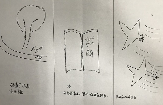 活动开始之前,朱鸿博向全体心委详细介绍了本届心理健康月的全部活动,并将具体要求及时间节点、人员分配等一一安排到位。她简要向大家介绍了绘画心理治疗的原理及流程,并引导大家将A4纸对等折成三份,将过去的我、现在的我、未来的我画下来,画完后分成四大组进行分享。由最开始的放不开到慢慢沉下心,由流于表面到审问自己、觉察内心,心理委员们通过“三个我”的体验,将潜意识内压抑的感情与冲突呈现出来,释放负能量、解压、宣泄情绪、调整情绪和心态、修复心灵上的创伤、填补内心世界的空白。