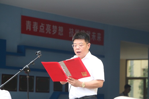 校长李正祥在开学典礼上致辞。他首先代表学校向新加入学校的老师和2019级新生表示热烈的欢迎,并回顾了过去一学年里学校在教育教学质量和师生队伍建设等方面取得的可喜成绩。新的学期,李校长对同学们提出了几点希望:要善于阅读,勤于思考,做一名有文化的中职生;要强化专业,练就技能,做一名有本领的中职生;要学会做人,修身养性,做一名有道德的中职生;要与时俱进,响应号召,自觉养成垃圾分类的好习惯,做一名讲文明的中职生。
