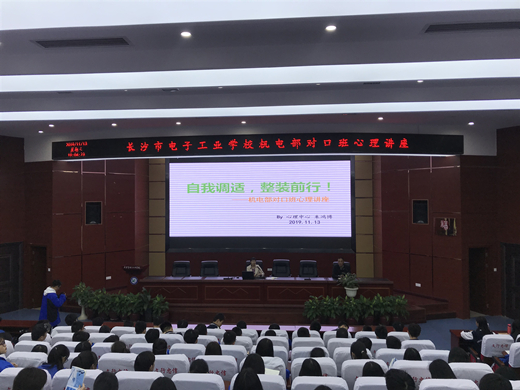 本网讯(通讯员 罗迪)为了增强学生自我调适能力,提高学生心理健康水平,11月13日晚,机电技术专业部特邀学校心理中心朱鸿博老师在开慧厅开展《自我调适 整装前行》心理讲座,高二、高三年级对口班学生参加活动,讲座由机电部荣红林部长主持。