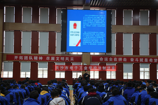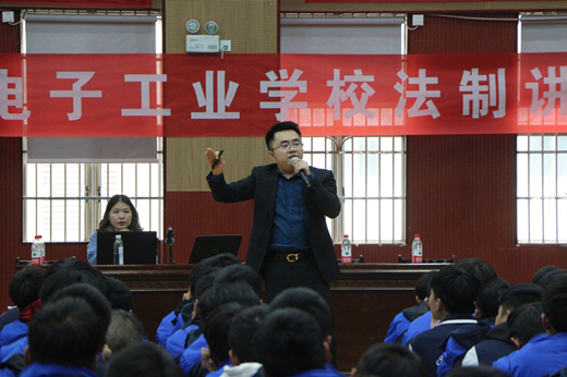 本网讯(通讯员 王雄姣)为进一步增强学生的安全意识,提高学生的法律意识,帮助学生形成健全的法制观念,营造文明、平安、和谐的校园育人环境,我校分别于11月4日、21日、22日举办了三场以“知法、懂法、守法、用法”为主题的预防未成年人犯罪专题讲座。学校特邀湖南人和律师事务所的刘杰律师担任主讲嘉宾。讲座活动在学校福湘馆举行,按三个专业部,分三个批次进行。校长李正祥、副校长贺今海、纪委书记彭新明、保卫科长舒广等领导出席活动。
