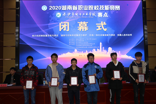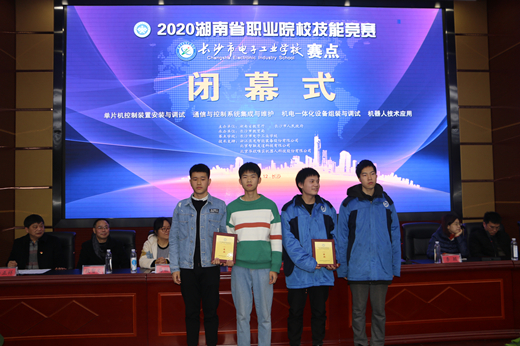 本网讯(通讯员 王雄姣)12月21日,经过两天紧张、激烈的比赛,2020年湖南省职业院校技能竞赛中职机电一体化设备组装与调试、单片机控制装置安装与调试、通信与控制系统集成与维护、机器人技术应用4个赛项的比赛在我校落下帷幕。湖南省教科院职成所继续教育研究室主任周洪波,省派赛点第一副主任胡伏湘,长沙市教科院副院长涂立奇,各赛项专家组组长李颖、易丽华、段智文、吴海波,yh533388银河校长李正祥、副校长张湘吉等领导出席闭幕式。闭幕式由yh533388银河教务科主任林干祥主持。
