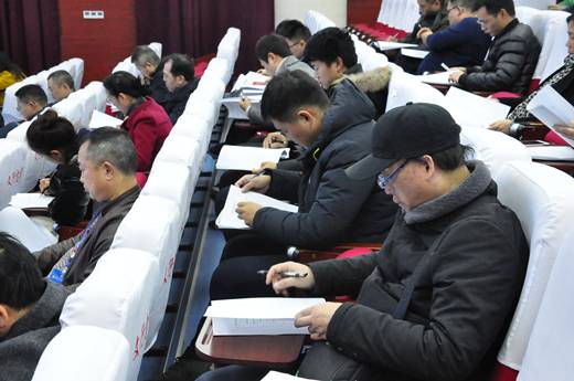 与会人员认真填写民主测评表