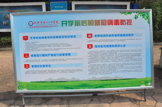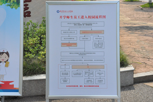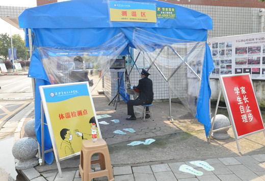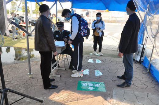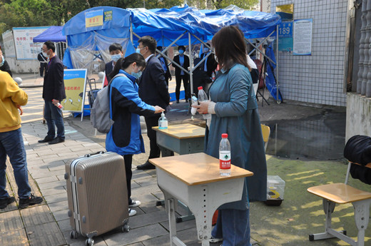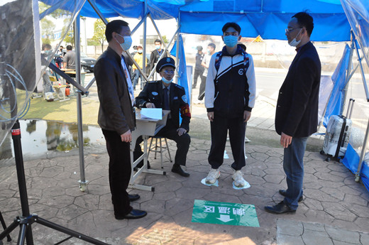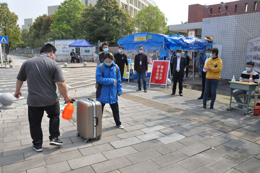 当天上午,校长李正祥、党委书记李志彬带领行政干部、各专业部负责人早早在校门口守候,热情迎接学子归来。教师志愿者和安保人员在校门口组织学生进行消毒及体温检测,引导学生入学报到,为高三师生开学复课保驾护航。为减少人员聚集,家长不得进入校门,学生们携带行李、佩戴口罩,保持间隔1米,依次排队,经消毒、体温检测无异常后,方可入校。报到现场,工作人员各司其职,现场秩序有条不紊,为学生们安全返校筑起防线。长沙市教育局副局长杨庆江、职成处处长范霖、疫情防控联点干部罗慕霞一行到校检查,对我校的高三开学工作给予充分肯定。