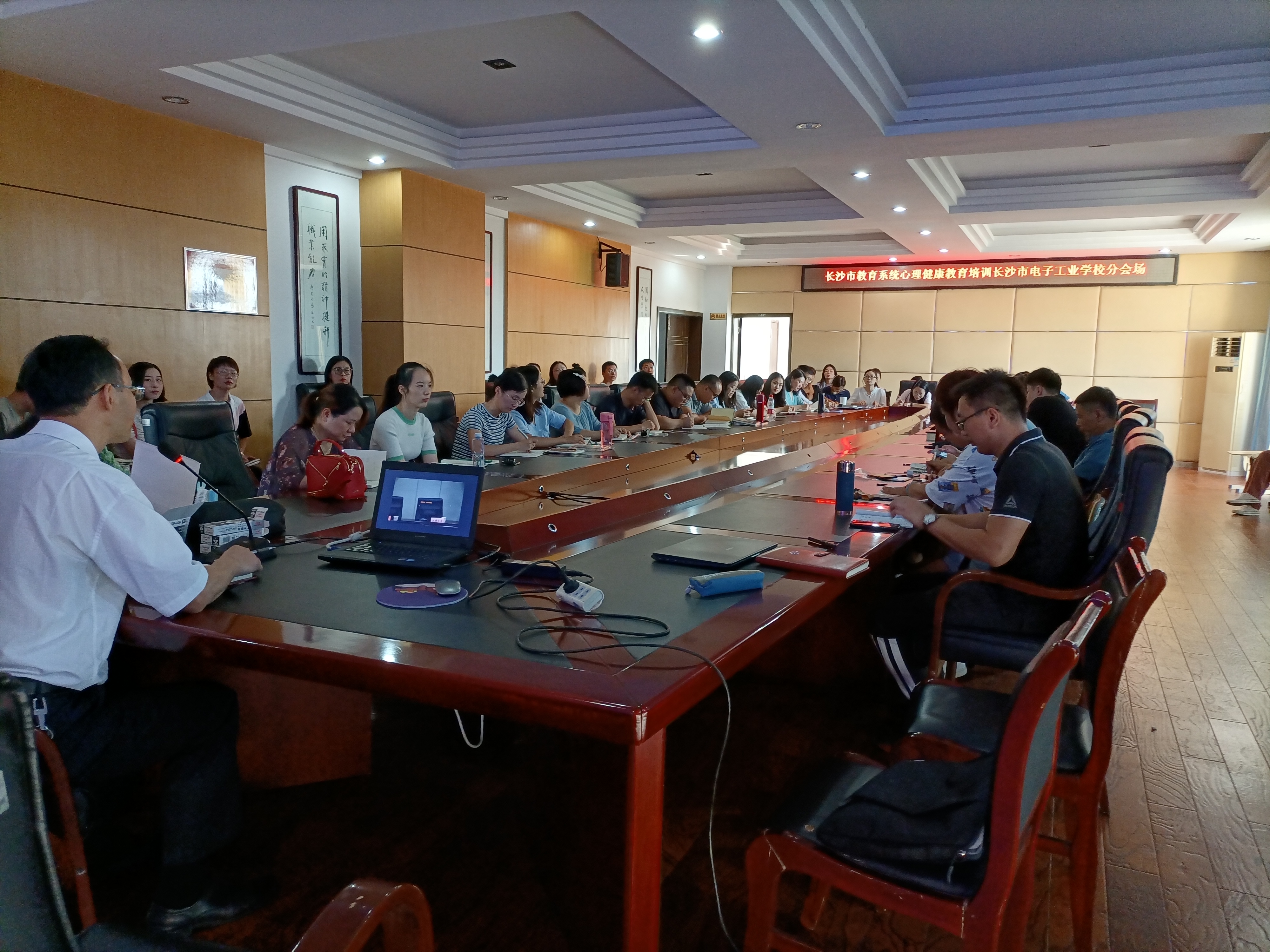 本网讯(通讯员 朱鸿博)2020年8月27日上午9点,长沙市教育系统心理健康教育线上培训如期举行。我校各部部副主任及干事、全体班主任、学生科全体成员在电子分会场1-208会议室参加培训,学生科副科长胡贵树主持会议。