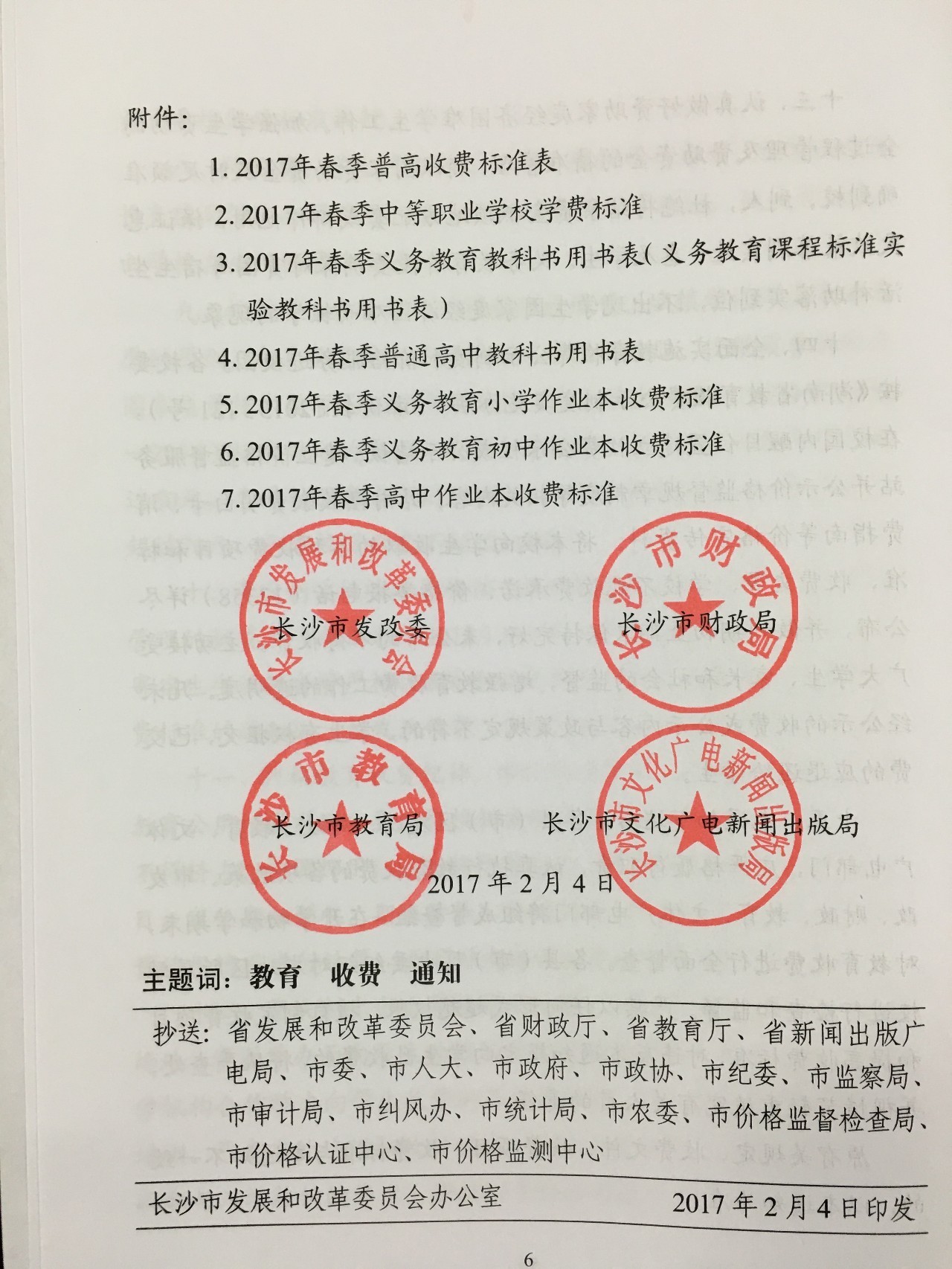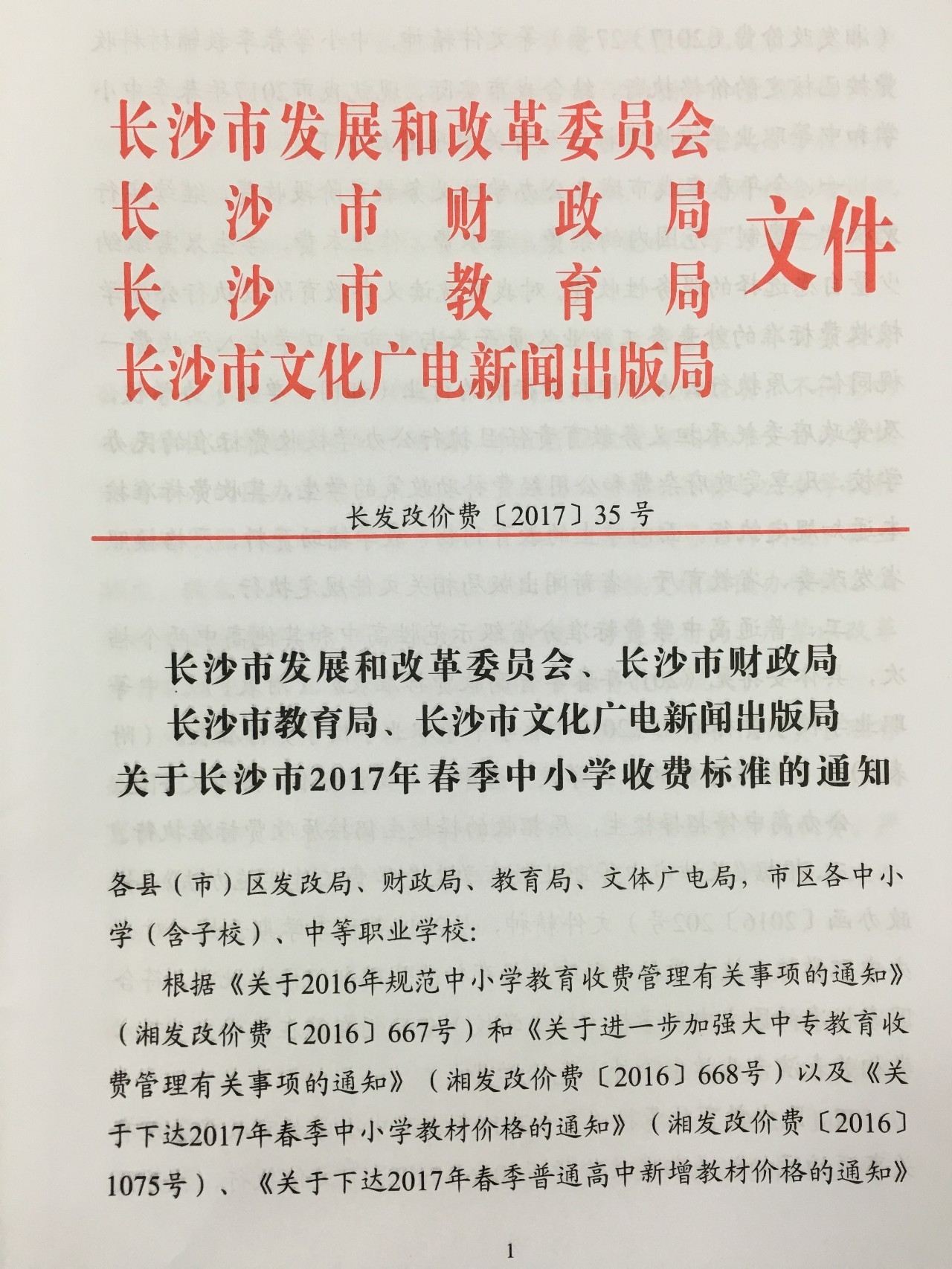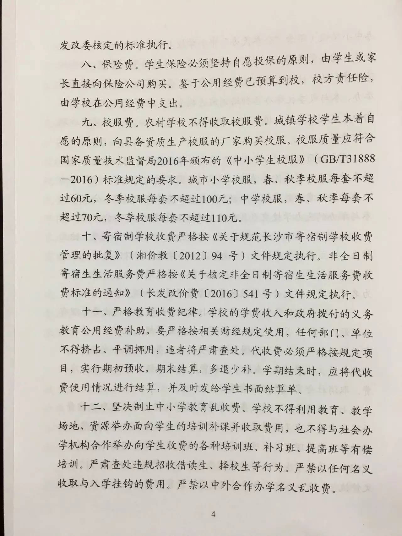 转发:长沙市2017年春季中小学收费标准