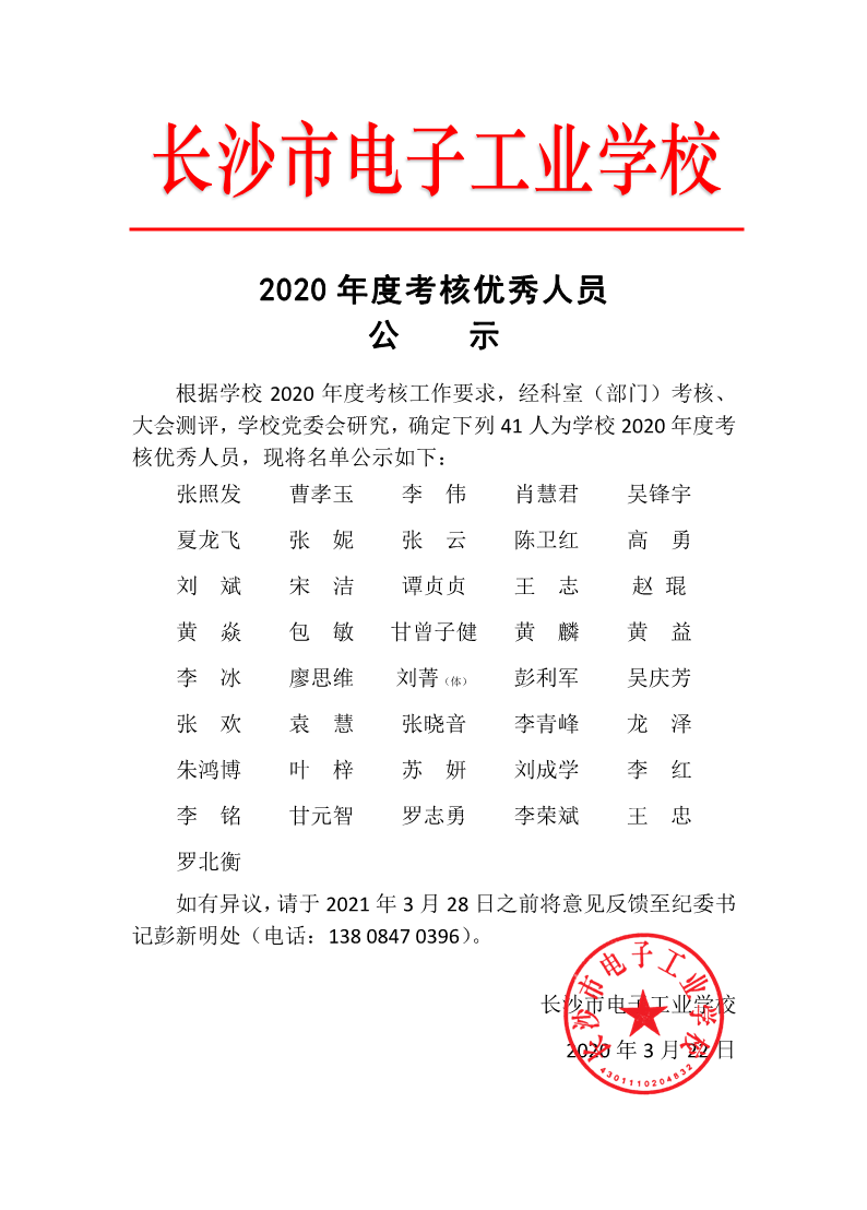 2020年度考核优秀人员公示