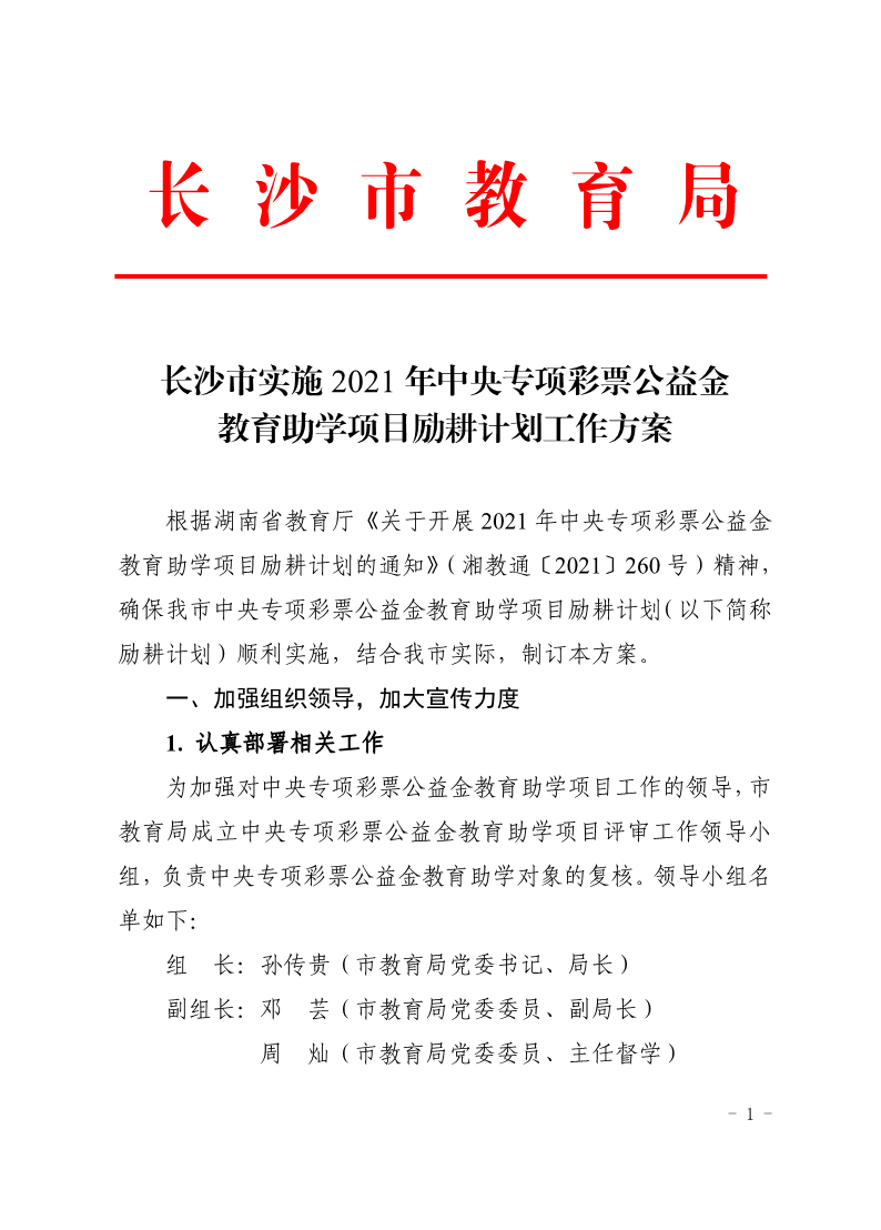 长沙市实施2021年中央专项彩票公益金教育助学项目励耕计划工作方案 来源: 发布时间:2021-09-30 22:35:14 浏览次数: 次 【字体:小 大】 附件1:2021年中央专项彩票公益金励耕计划分配表.docx附件2:励耕计划困难教师资助申请表.doc附件3:励耕计划困难教师资助项目名单汇总表.xls附件4:励耕计划困难教师资助项目县级部门信息汇总表.xls附件5:中央专项彩票公益金教育助学项目实施细则(试行).docx 终审:dzb 分享到: 【打印正文】