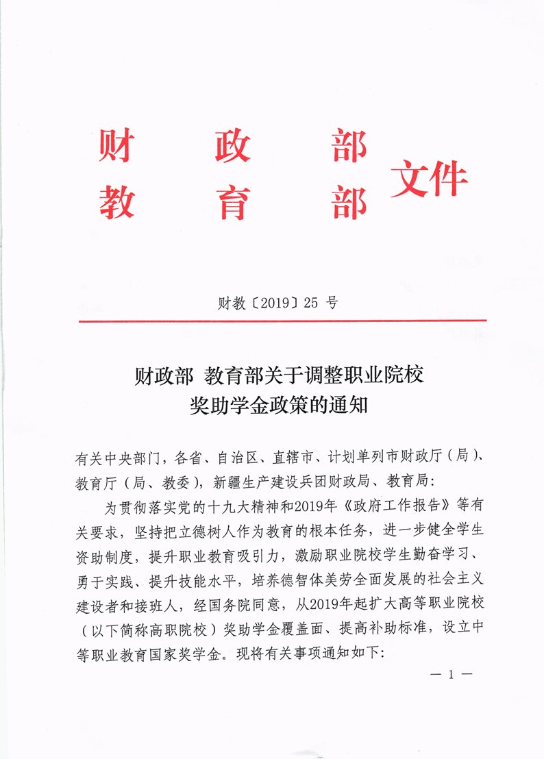 财政部教育部关于调整职业院校奖助学金政策的通知