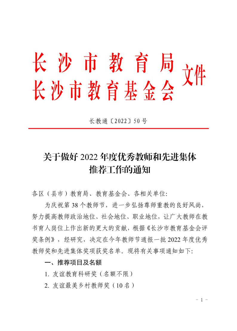 关于做好2022年度优秀教师和先进集体推荐工作的通知