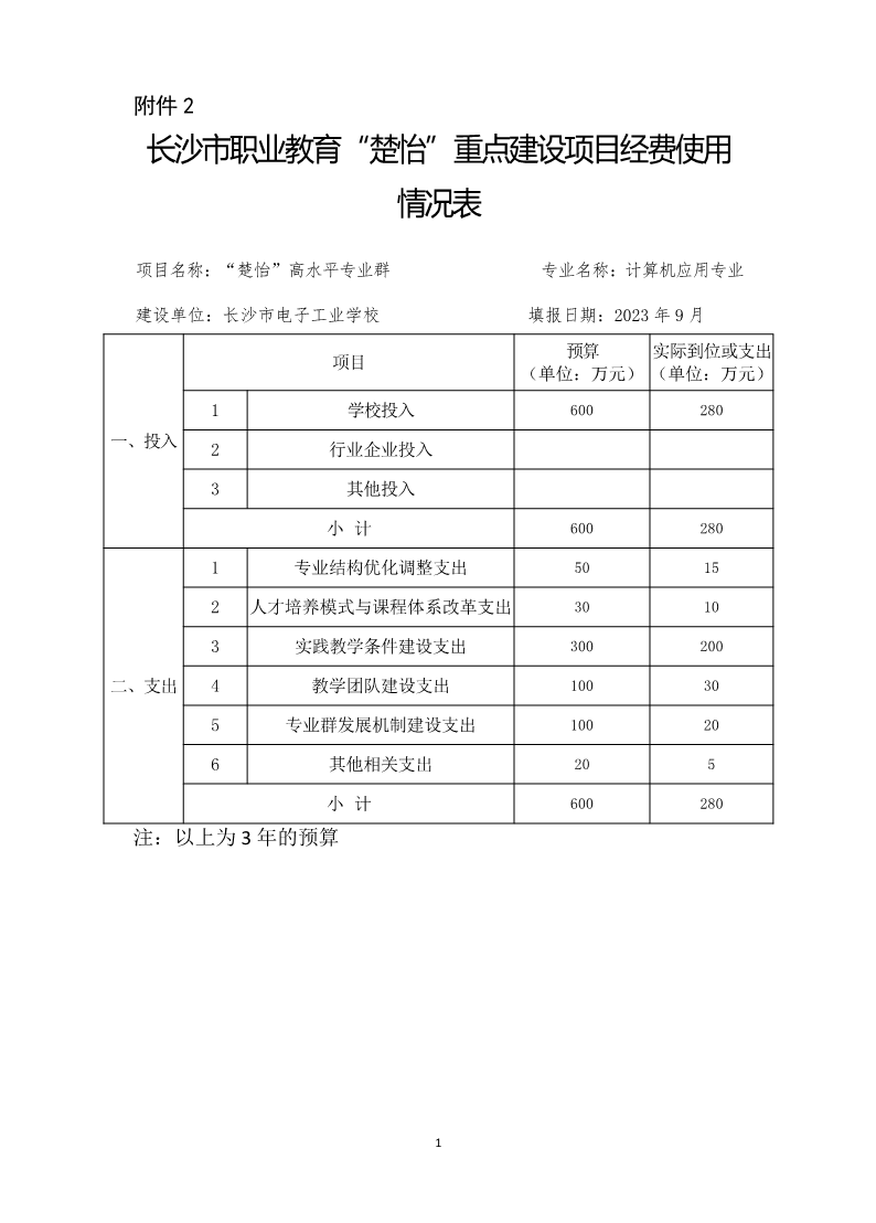 计算机应用专业群经费使用情况