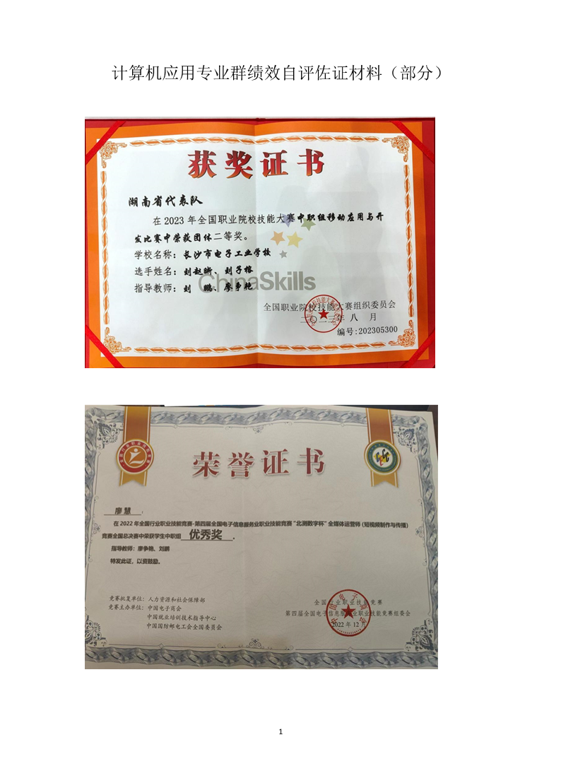 计算机应用专业群绩效自评佐证材料
