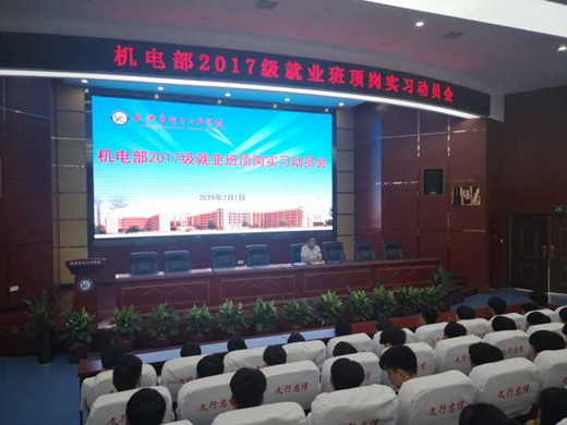 本网讯(通讯员 晏康)2019年7月1号下午,机电技术专业部在学校开慧厅召开了2017级的顶岗实习动员会。动员会由专业部主任荣红林老师主持。机电部2017级的就业班级的班主任和全体同学参会。