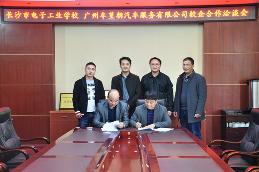 3月27日下午,广州车篁朝汽车服务有限公司总经理谭华新、副总经理陈燃、市场部专员周勃屹一行三人来到我校实地考察,与校长李正祥、主管招生就业副校长贺今海、招生就业办主任严必特,机电部主任荣红林就我校汽车电子技术应用专业开展“现代学徒制”--校企合作,进行了深度洽谈,整个会议气氛轻松、热烈,双方签订了2017--2023年“现代学徒制”校企合作协议。