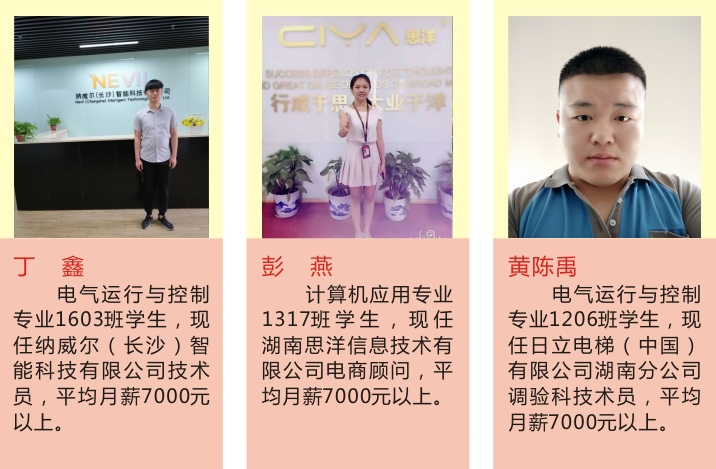 培养目标:学生通过全省对口高考高职院单招两种方式,可以就读湖南师范大学、湘潭大学、湖南农业大学、湖南工业大学、湖南科技学院、湘南学院、长沙师范学院、湖南铁道职业技术学院、湖南信息职业技术学院、湖南劳动人事职业学院、长沙民政职业技术学院、长沙航空职业技术学院、长沙职业技术学院60余所本、专科院校。
