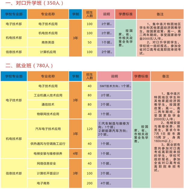 主要课程:语文、数学、英语、专业综合(电子技术基础、电工技术基础、电气控制与PLC)