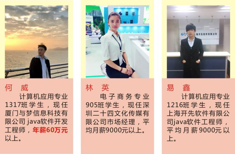 培养目标:学生通过全省对口高考高职院单招两种方式,可以就读湖南农业大学、湖南工学院、邵阳学院、湖南涉外经济学院、湖南交通工程学院、湖南应用技术学院、湖南信息学院、湖南外贸职业学院、湖南商务职业技术学院、湖南工程职业技术学院、湖南大众传媒职业技术学院、湖南工业职业技术学院、长沙商贸旅游职业技术学院40余所本、专科院校。